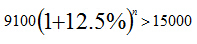,通过估算带入发现当n=5时,式子开始成立,所有到2018年开始,限额以上企业(单位)商品零售额将首次超过15000万亿元,故答案为B。