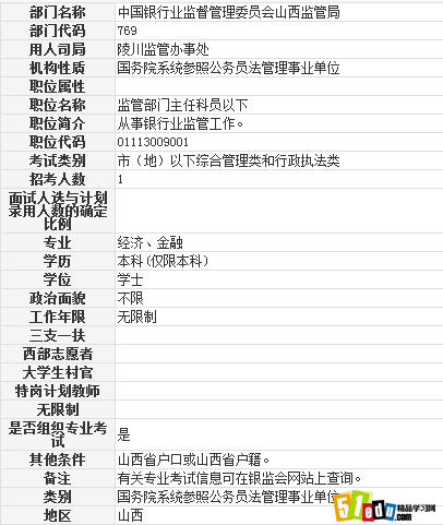 2014山西公务员陵川监管办事处职位表就为大家介绍到这儿了,希望对大家有所帮助,祝各位一举成功!