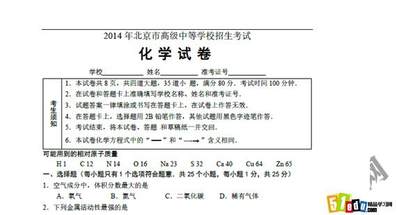 2014年北京中考化学考试已经结束,小编在第一时间为大家整理了这篇2014年北京中考化学真题,希望可以帮助到大家!