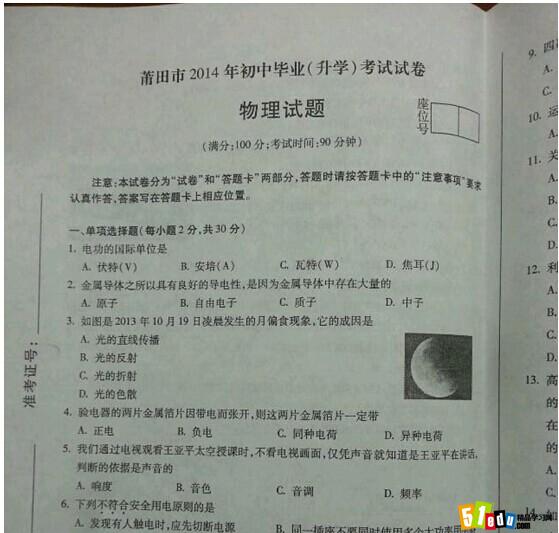 2014年福建莆田中考物理已结束,精品小编及时整理了这篇2014年福建莆田中考物理真题,以供大家参考!
