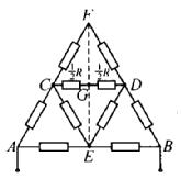 解法2 将C、D间的电阻一分为二,由于电路的对称性,可将F、G、E三点连在一起,如图4(丙)所示。