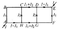 例4 如图4(甲)所示是由9个阻值均为4Ω的电阻连成的电路,现在A、B两点之间加上8V的电压,则流过接在E、B两点之间的电阻的电流I1为_________A,流过接在E、D两点之间电阻的电流I2为__________A。