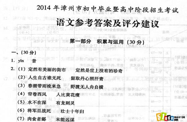点击下载:2014年福建漳州中考语文真题答案