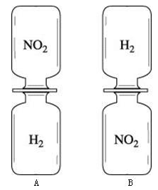 )的集气瓶中间的玻璃片抽走,使两瓶口密合在一起(不要振荡),可观察到A中两瓶气体的颜色很快趋于一致(两种气体不反应),而B中需很长时间才能达到同样的效果。观察、对比实验现象,你能得出的结论有: