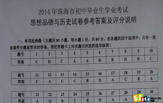2014年广东珠海中考文综考试已经结束,小编在第一时间为大家整理了这篇珠海2014年中考文综试卷答案,希望可以帮助到大家!