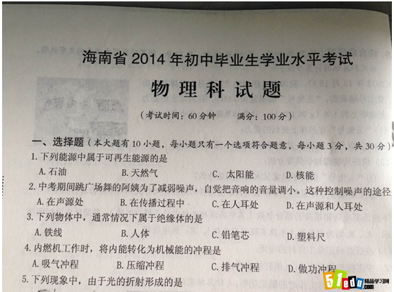 2014年海南中考物理考试已经结束,小编在第一时间为大家整理了这篇2014年海南中考物理真题,希望可以帮助到大家!