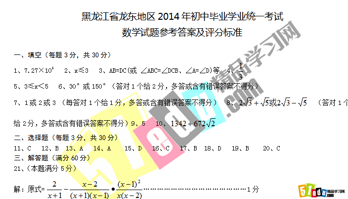 2014年哈尔滨中考数学考试已经结束,小编在第一时间为大家整理了这篇哈尔滨2014年中考数学试卷答案,希望可以帮助到大家!