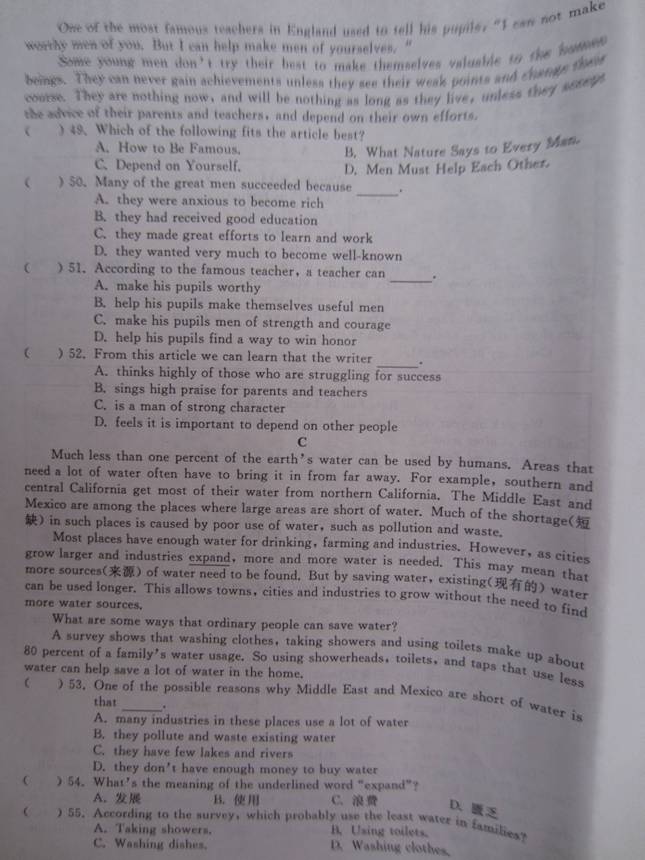 中考是选拔考试,同时也是对初中三年来所学的知识的全面检验,为了帮助大家在中考中脱颖而出。小编精心准备了这篇2012湖北省随州中考英语试题三,希望可以对大家有所帮助!
