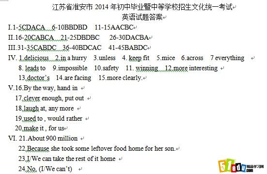 2014年江苏淮安中考英语考试已结束,小编为大家整理了这篇2014年江苏淮安中考英语答案解析,希望对大家有帮助!