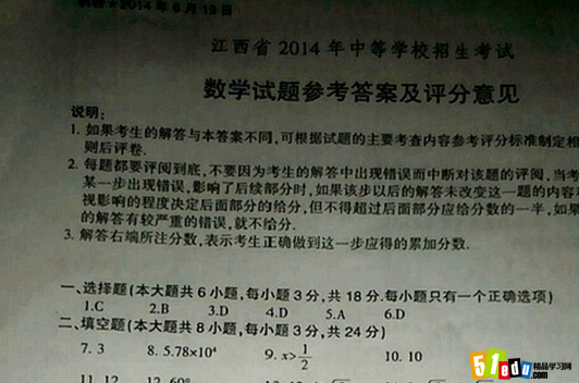 2014年江西中考数学考试已经结束,小编在第一时间为大家整理了这篇江西2014年中考数学试卷答案,希望可以帮助到大家!