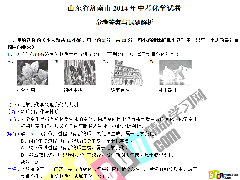 2014年山东济南中考化学考试已经结束,小编在第一时间为大家整理了这篇2014年山东济南中考化学真题,希望可以帮助到大家!